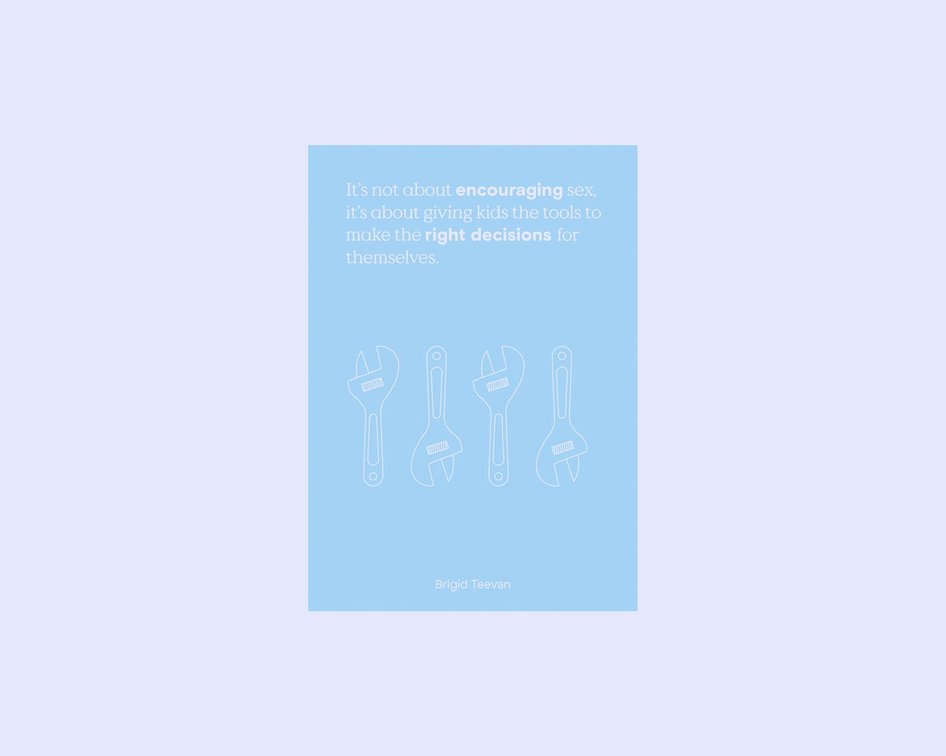 We also created playful and engaging copywriting to persuade her target audience — the parents. The tool that allows this to happen with authenticity is the typography. The language is used to change parents views on sex education and embrace the awkwardness of it. We used two typefaces to highlight and embolden certain messages in our copy and to show the brands diversity.