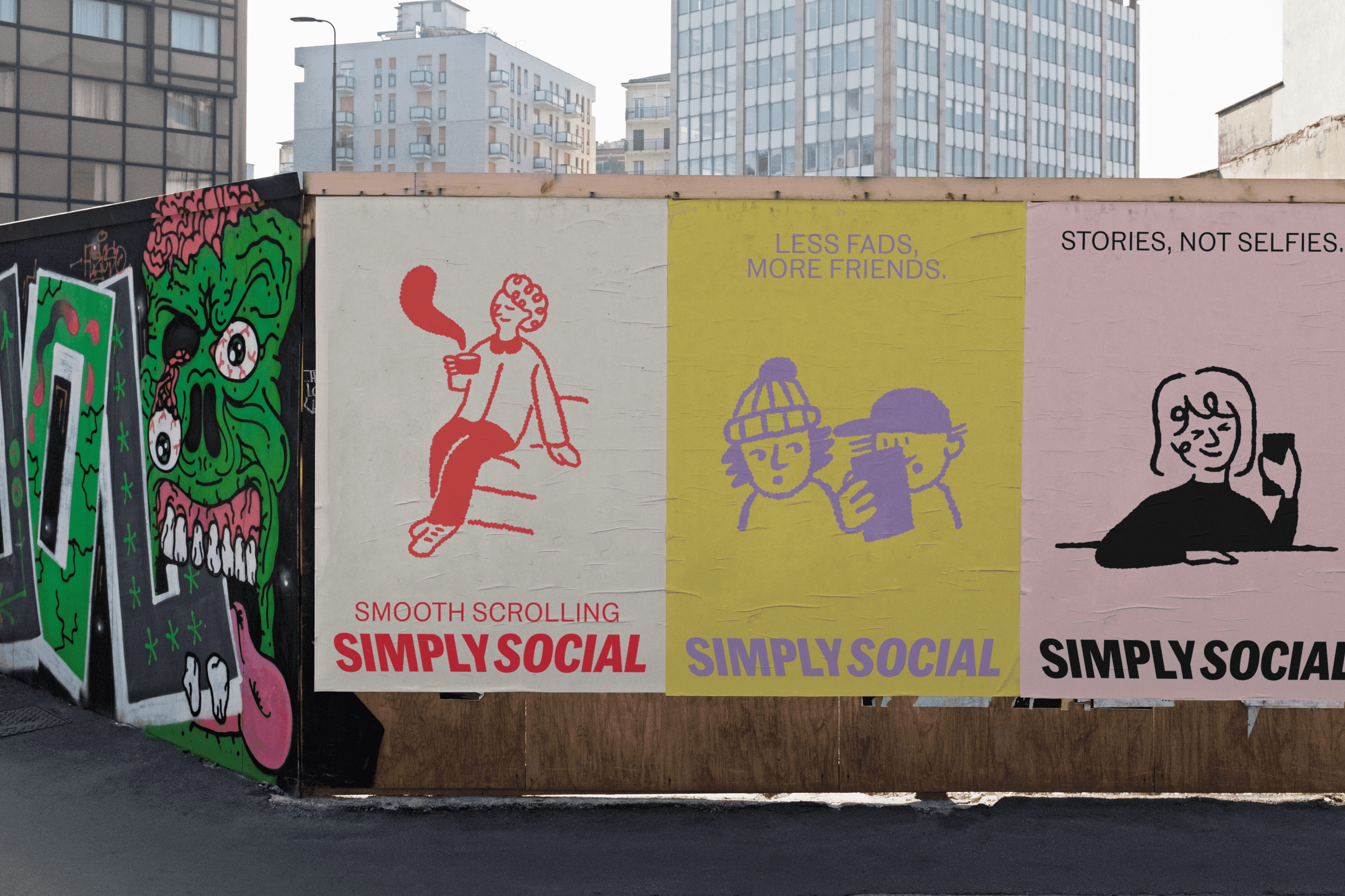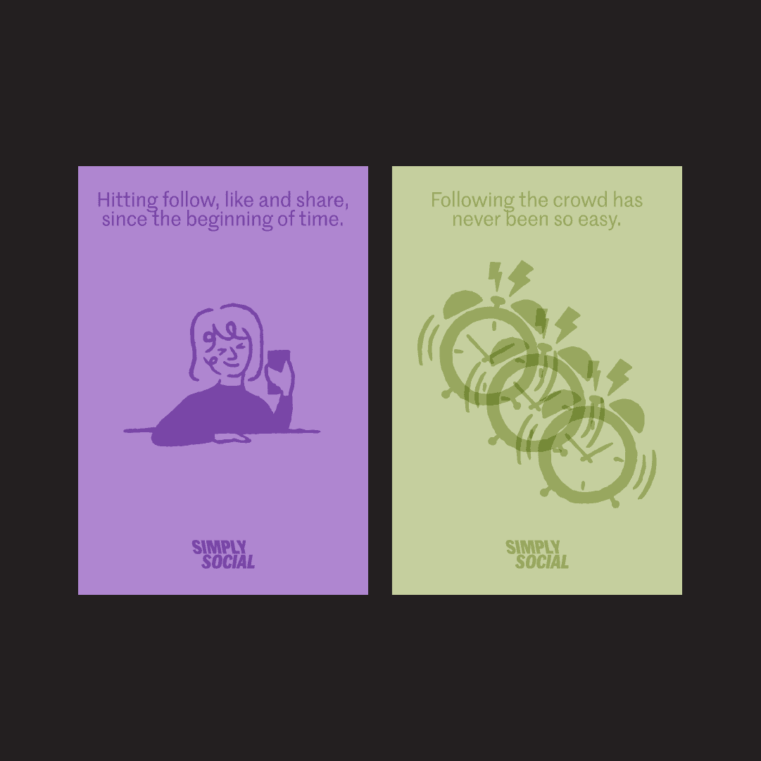 Simply Social are a social led creative agency. They came to me with a brand that didn't reflect their personality, vision or the work they do. I produced a vibrant and disruptive brand identity for them, that included illustration, copywriting and website design. The aim was to create something bold, unique and fast moving — much like the digital world.